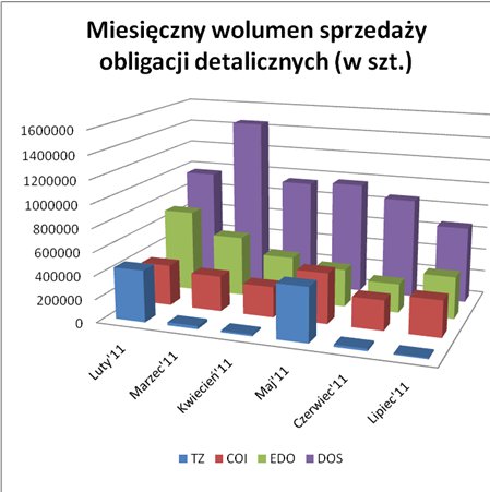 W lipcu 2011 roku nabyto 313 171 szt. obligacji czteroletnich i było to o 21,13 proc. więcej niż w czerwcu br. Największym zainteresowaniem cieszyły się one w województwach; mazowieckim (63 471 szt.) i śląskim (43 270 szt.). Trzecim w kolejności województwem, mierząc wolumen sprzedaży było dolnośląskie, gdzie nabyto 15 287 szt. tych papierów skarbowych. Poprzez e-kanały (Internet, konto Inteligo, telefon) sprzedano 30 proc. "czterolatek" sprzedanych w lipcu. Blisko połowa z nich została nabyta w dużych pakietach, liczących powyżej 1000 szt.