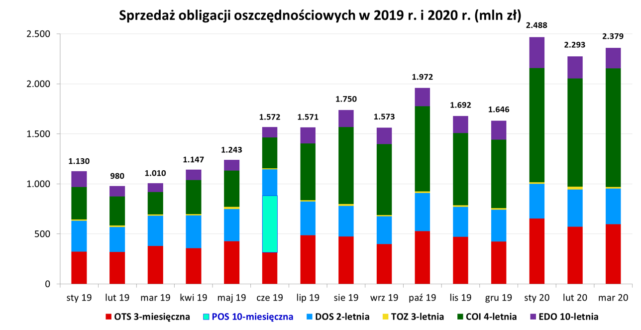 W marcu sprzedano obligacje oszczędnościowe o łącznej wartości 2.379 mln zł.