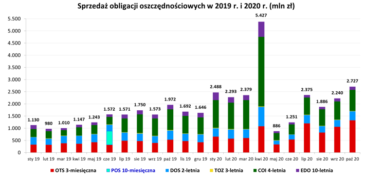 W październiku 2020 roku sprzedano obligacje: