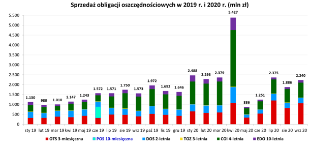 We wrześniu sprzedaż skarbowych obligacji oszczędnościowych wyniosła 2,2 mld zł. Od początku roku nabywcy indywidualni przeznaczyli na zakup instrumentów detalicznych ponad 21 mld zł, co przełożyło się na 77% wzrost w stosunku do analogicznego okresu ubiegłego roku. Zainteresowanie naszymi obligacjami potwierdza również utrzymująca się wysoka średnia miesięczna sprzedaż, która po 9 miesiącach ukształtowała się na poziomie 2,4 mld zł – komentuje Piotr Nowak, podsekretarz stanu w Ministerstwie Finansów.