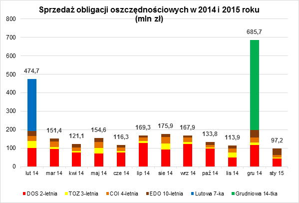 W styczniu 2015 roku sprzedano obligacje DOS0117 o wartości nominalnej 44,5 mln zł w tym 570,1 tys. zł w ramach Konta IKE-Obligacje. Cena jednej obligacji w okresie sprzedaży wynosiła 100 zł. Oprocentowanie obligacji ustalono na poziomie 2,00%. W drodze zamiany zakupiono obligacje dwuletnie o wartości nominalnej 16,4 mln zł, co stanowiło 37% sprzedaży. Cena zamiany wynosiła 99,90 zł.